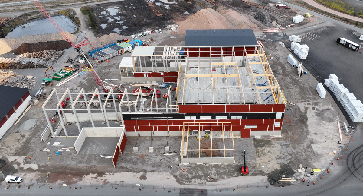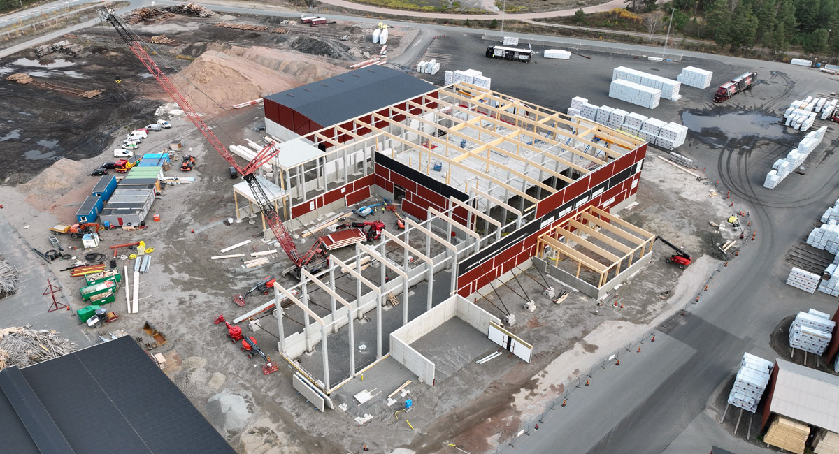 Hybridge konstruerar, levererar och monterar en hybridstomme som består av innerväggar av massiv betong, ytterväggar av halv-sandwishväggar samt socklar runt om av sandwichväggar. Bjälklag av HD/F, pelare av betong och limträ, stålpelare och stålbalkar som avväxlingar, vindkryss och portomfattningar. Samverkanbalkar i stål (HSQ), telferbalkar och räl av stål för Traversbalkar på konsoler i betongpelare. Samtliga takbjälkar är limträbalkar och TRP-takplåt överallt på limträbalkarna.